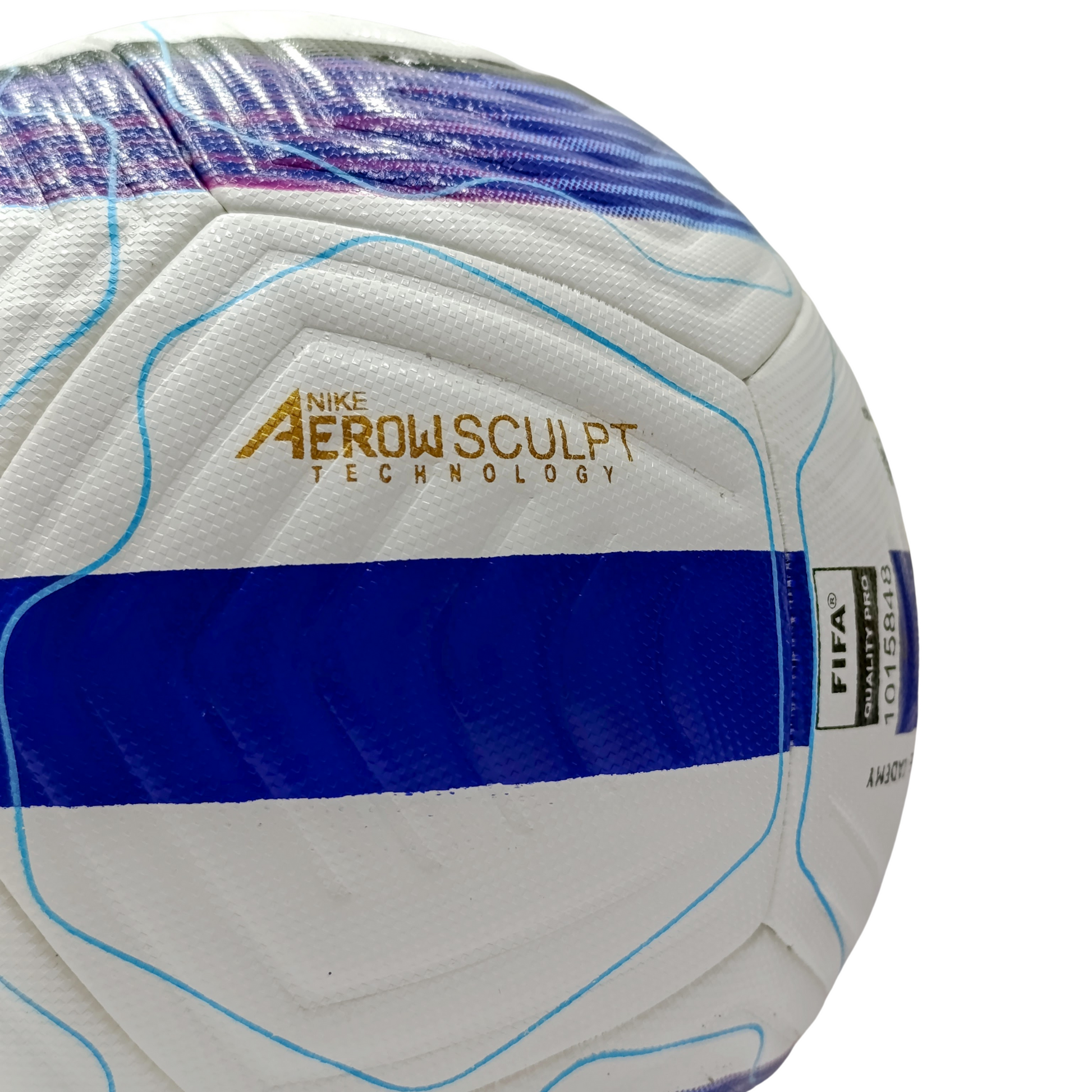 Make a statement on the pitch with this striking Nike football featuring a clean white base and mesmerizing blue-to-purple swirl pattern. The dynamic circular design creates a captivating visual effect while delivering reliable Nike performance for training and recreational play.